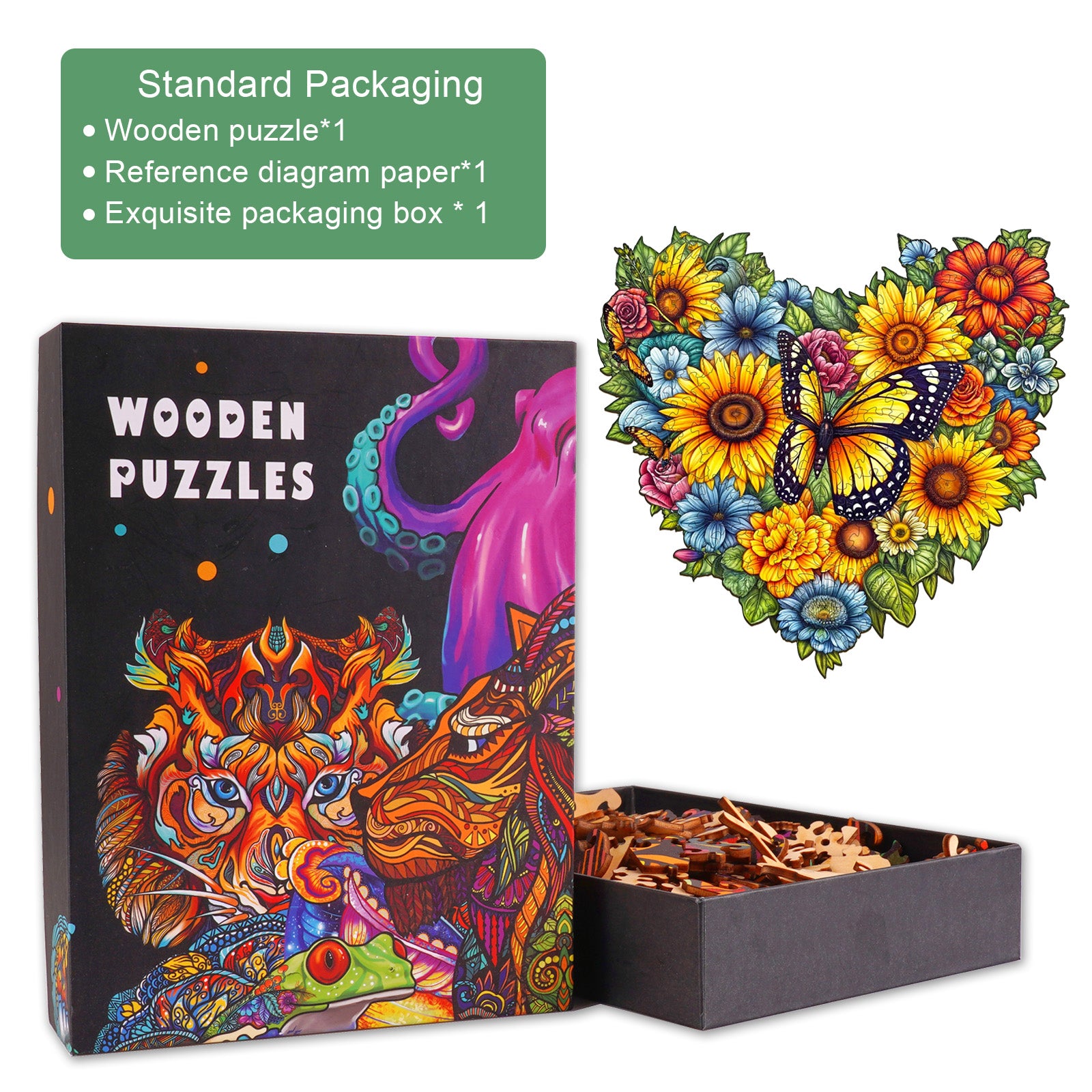 By choosing our high-quality wooden puzzles, you will embark on a journey of nature-inspired joy, enhancing your intellect, creativity, and fostering cherished moments with loved ones. Moreover, you'll possess a stunning decorative piece that adds warmth and uniqueness to your home environment.