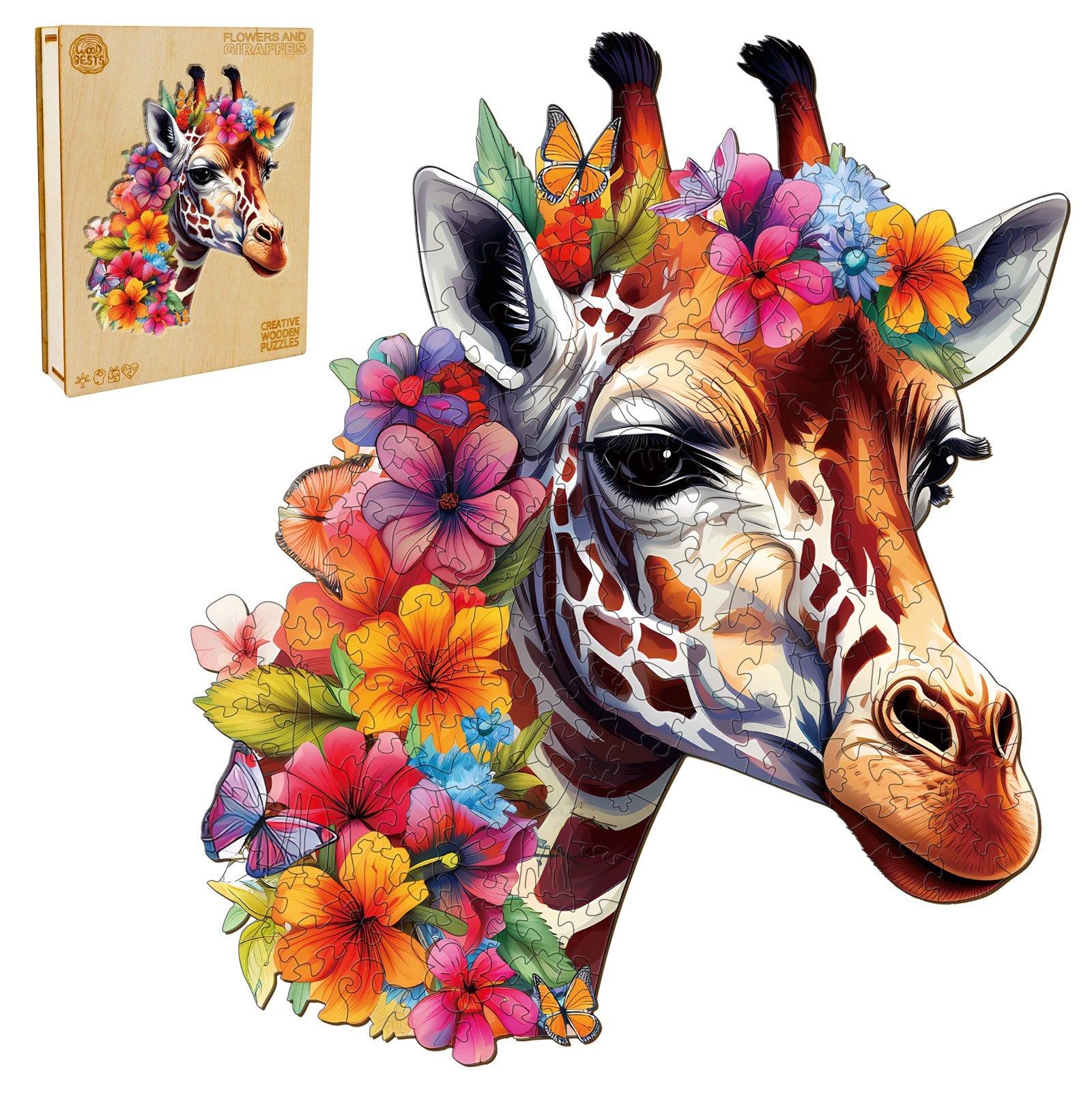 Flowers And Giraffes Wooden Jigsaw Puzzle