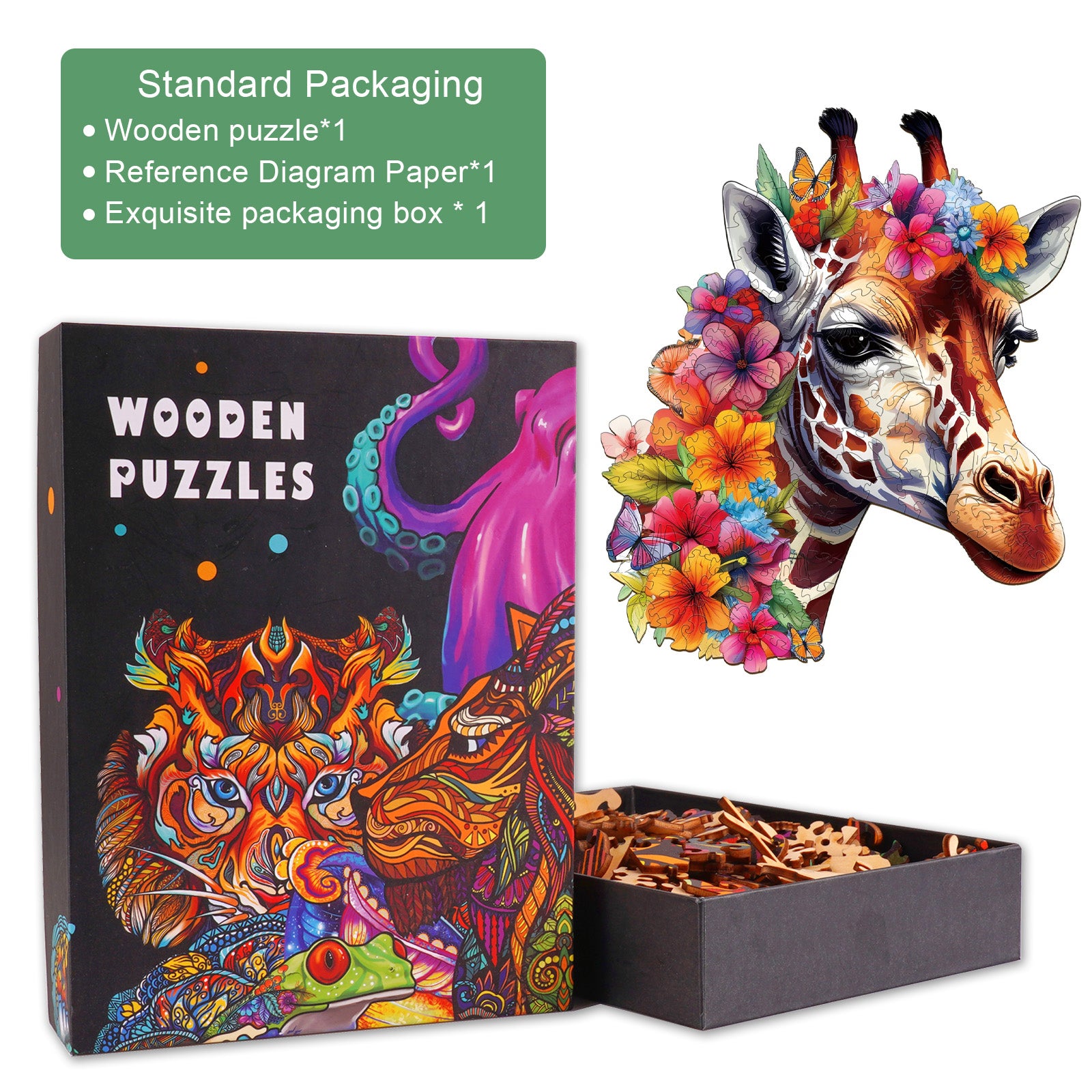 Be the first to review “Flowers And Giraffes Wooden Jigsaw Puzzle”