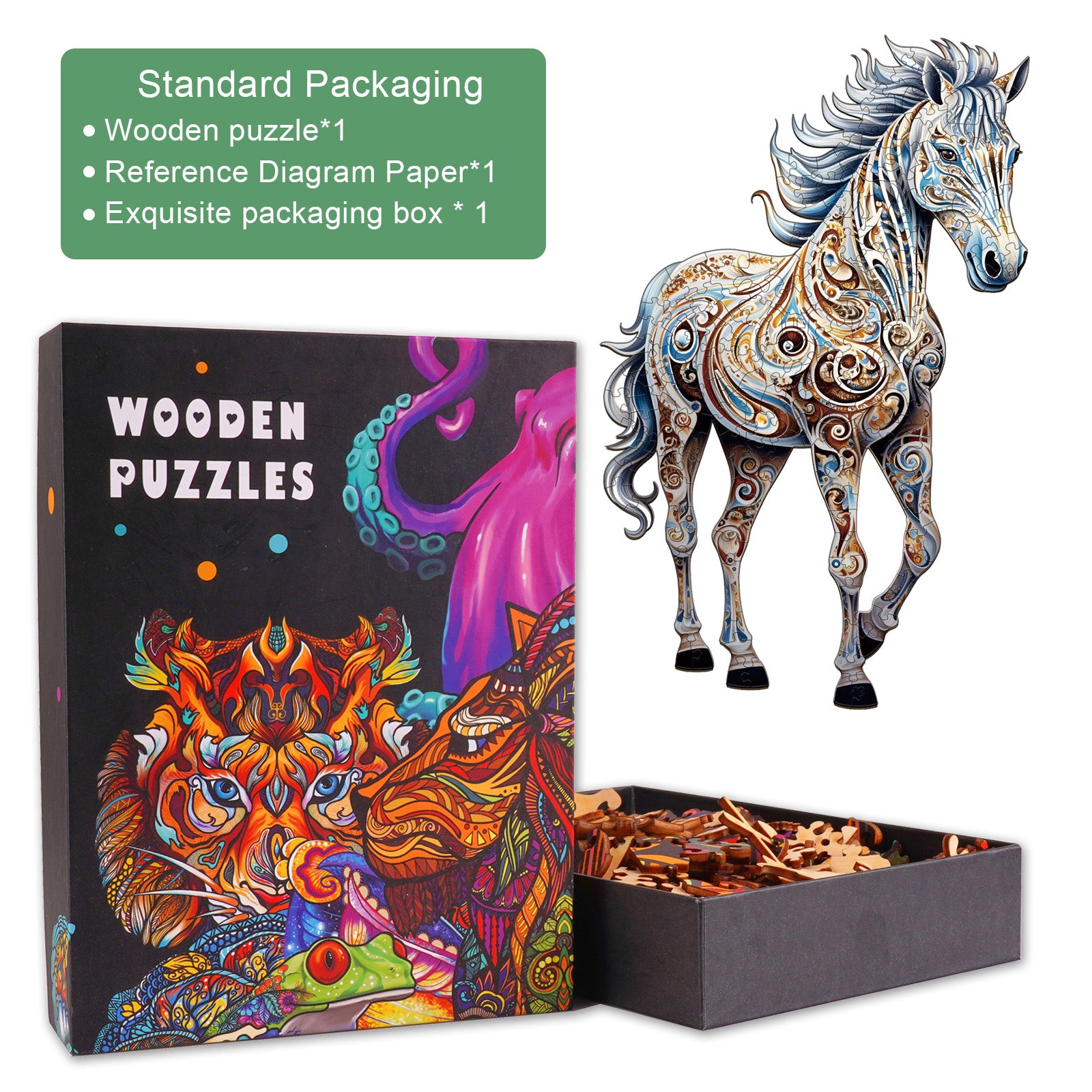 By choosing our high-quality wooden puzzles, you will embark on a journey of nature-inspired joy, enhancing your intellect, creativity, and fostering cherished moments with loved ones. Moreover, you'll possess a stunning decorative piece that adds warmth and uniqueness to your home environment.