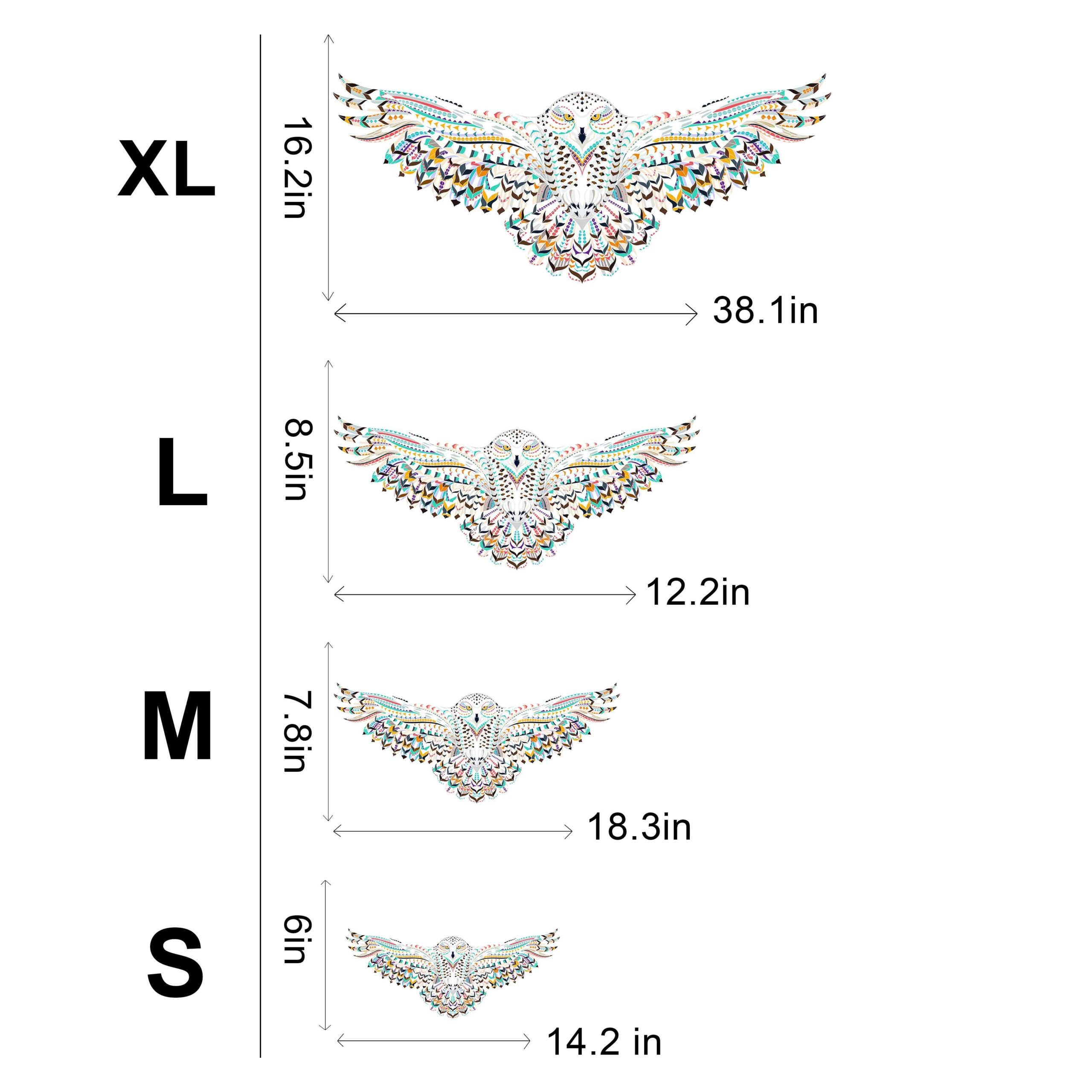 L – 20.2×8.5 in (258 Pcs), M – 18.3×7.8 in (203 Pcs), S – 14.2×6 in (100 Pcs), XL – 38.1×16.2 in (650 Pcs)